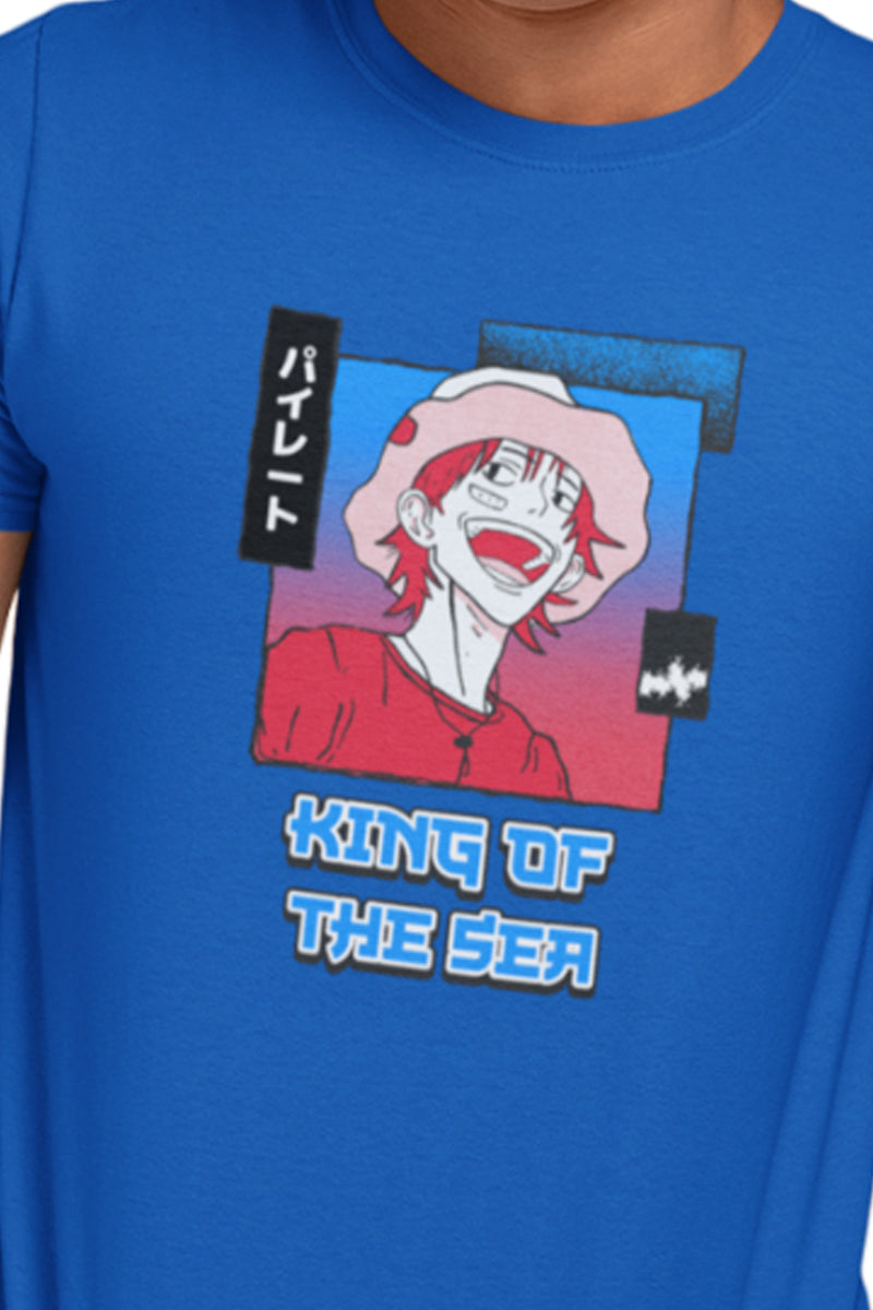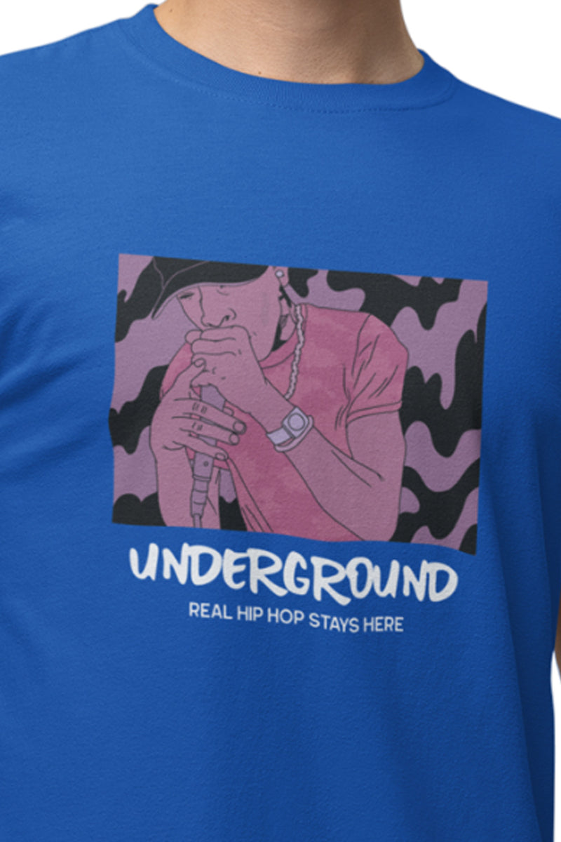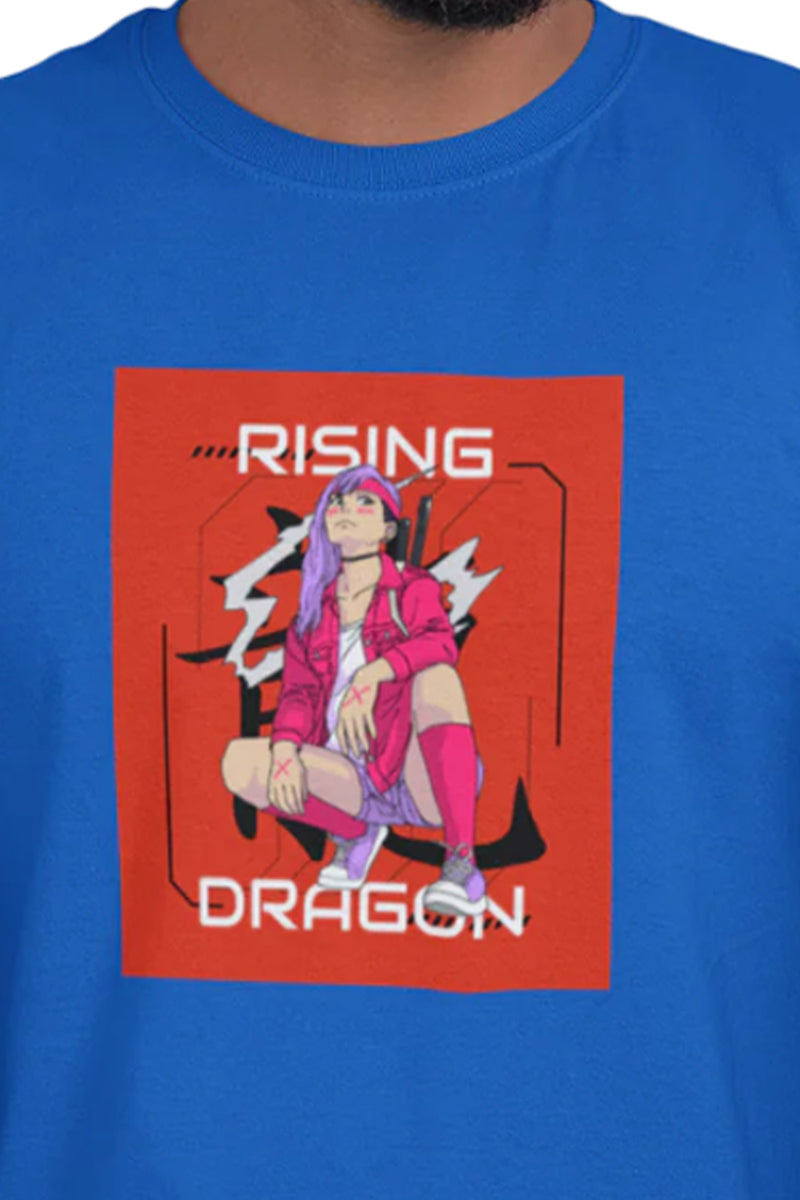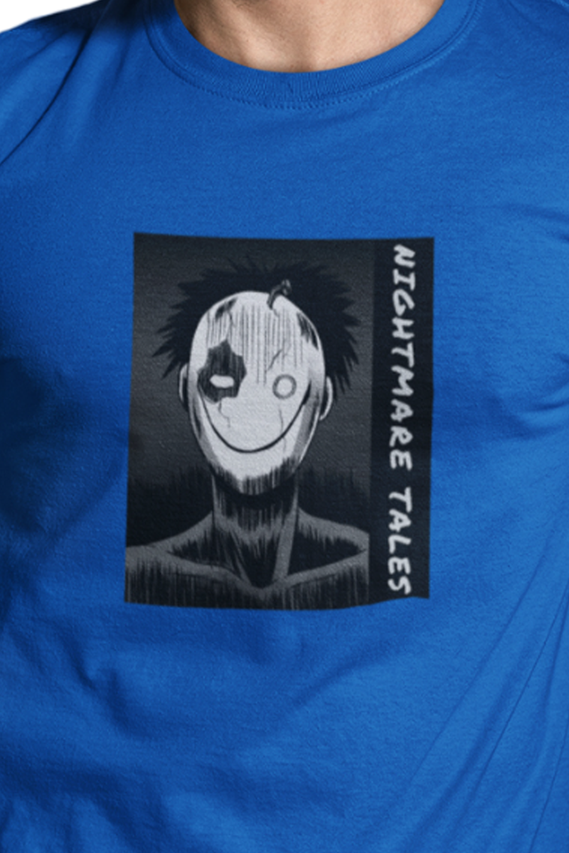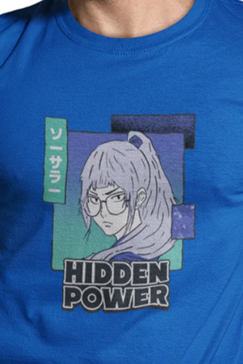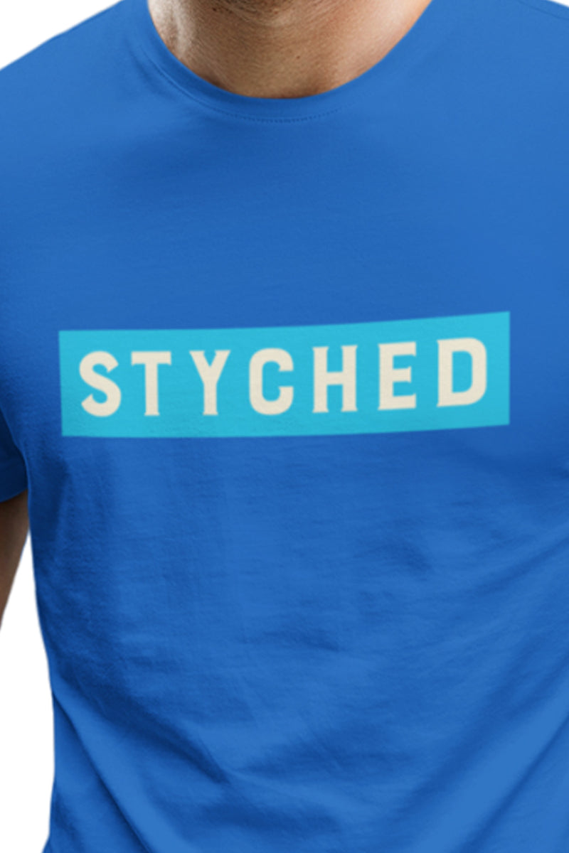 Blue Styched Logo Graphic Printed Blue Tshirt