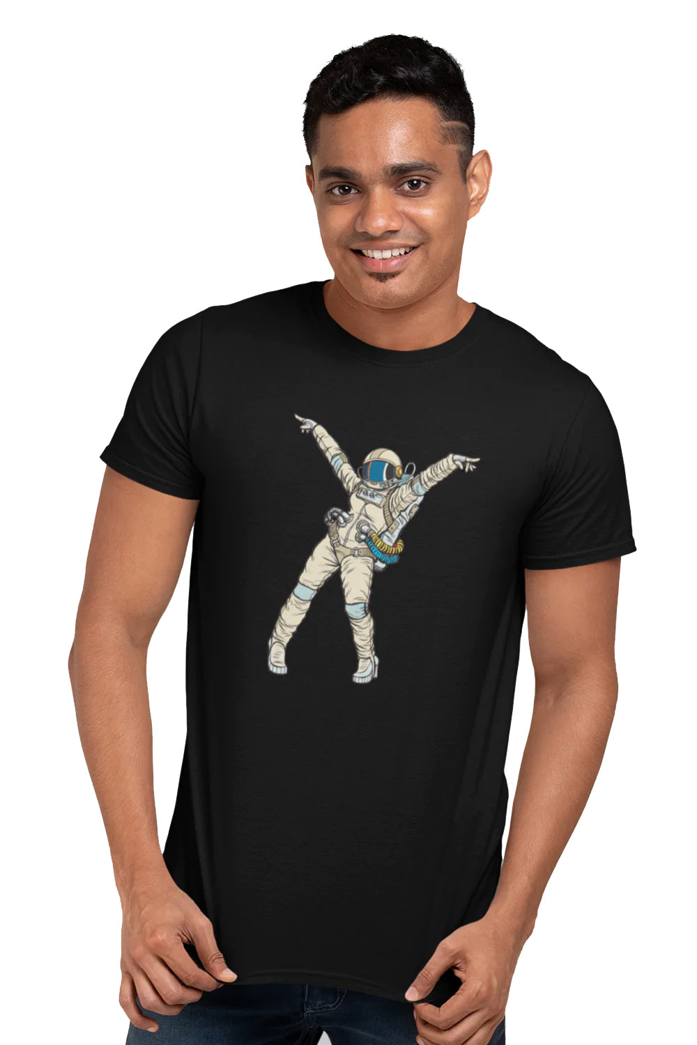 Astronaut Dancing Graphic Printed Black Tshirt