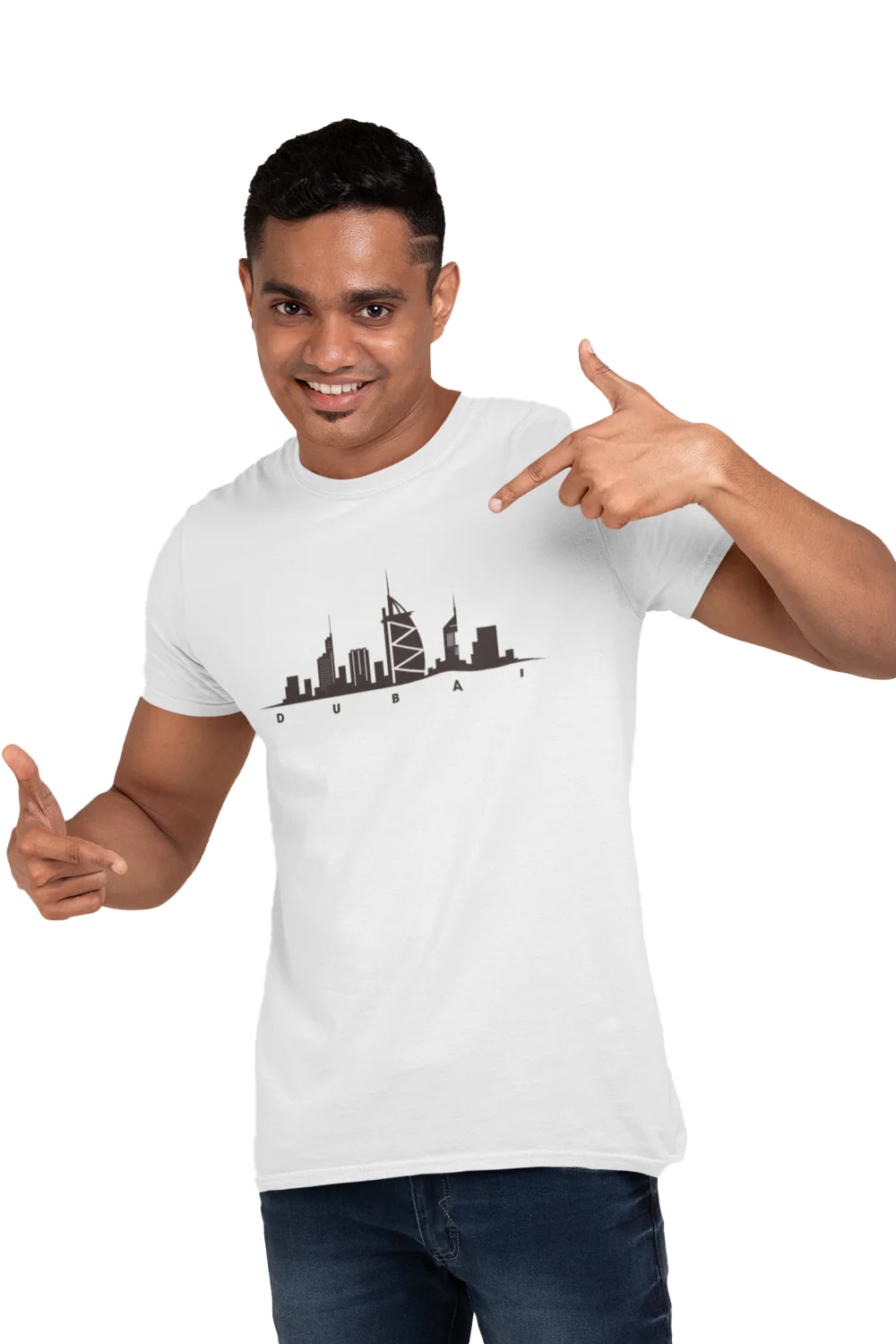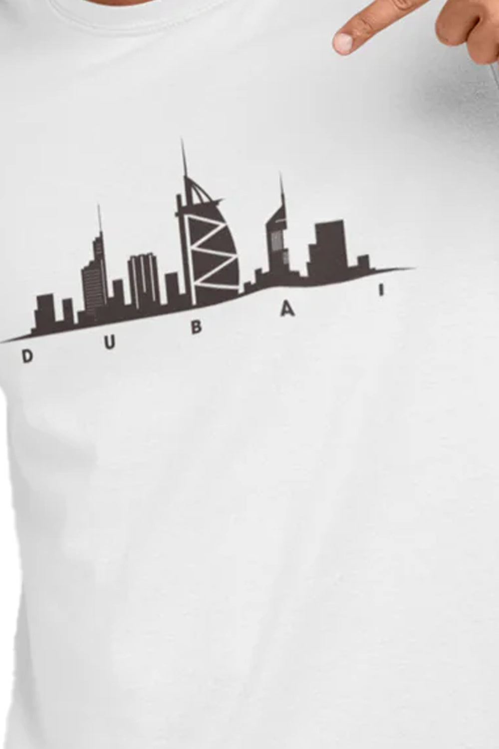 Dubai Skyline Graphic Printed White Tshirt
